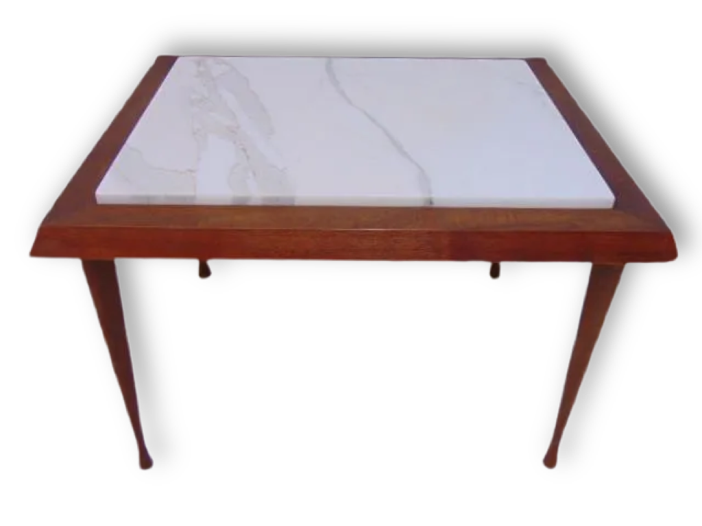 Classic and versatile, this teak side table is topped with a fantastic piece of white marble.