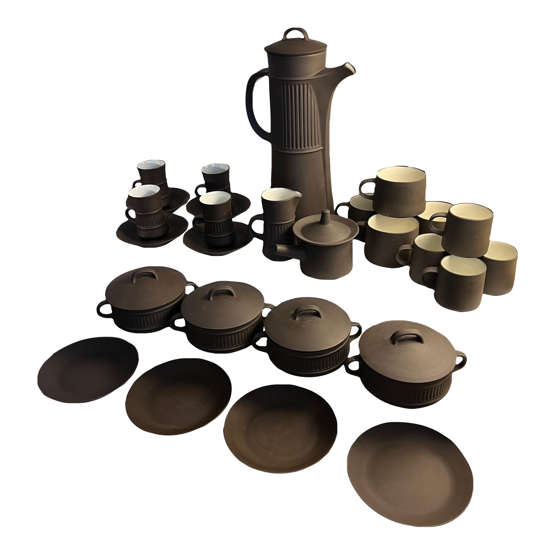 Early Dansk Flamestone ‘Petit Dejeuner’ Mocha, Espresso, Coffee, 27-Piece Breakfast Service for Four