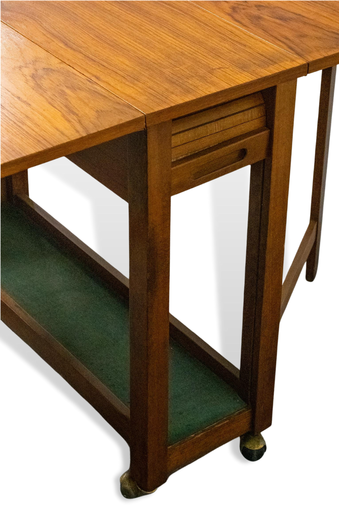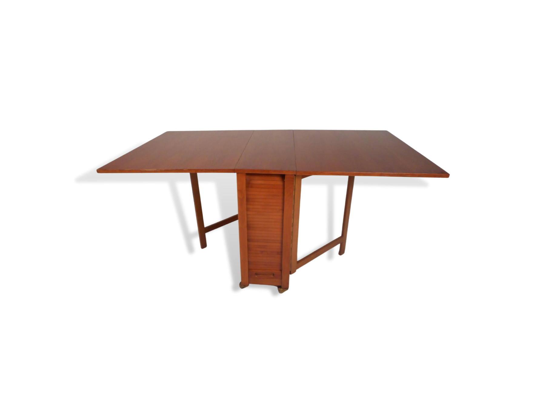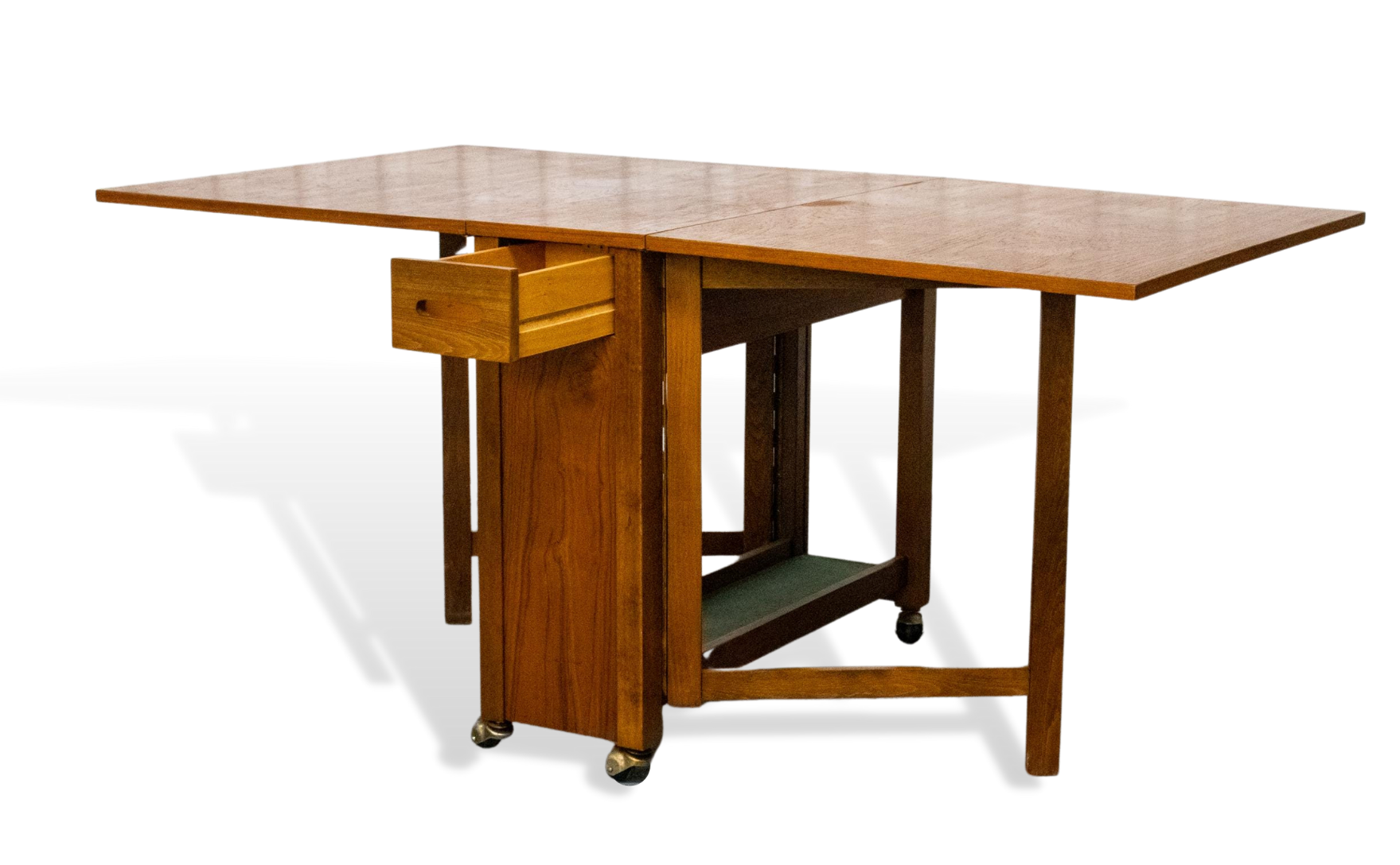 This lovely walnut table with 2 folding leaves is reminiscent of the classic 'Maria Flap' table by Bruno Mathsson.