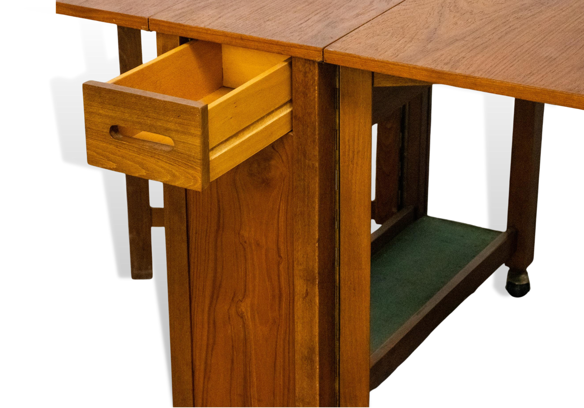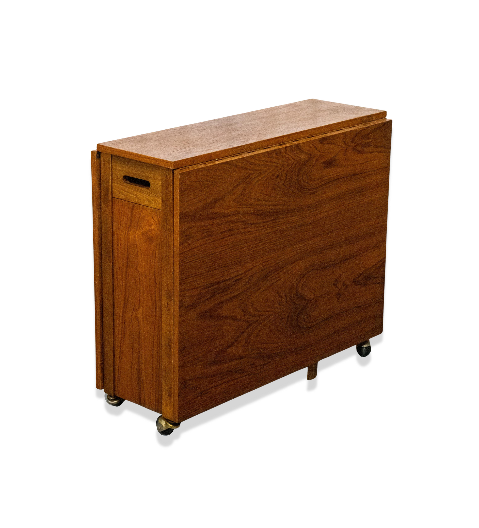 Perfect for small spaces, the table extends and collapses in seconds, casters make it easy to stow away or pull out for use. Makes a lovely petite sideboard/console table when folded against a wall.