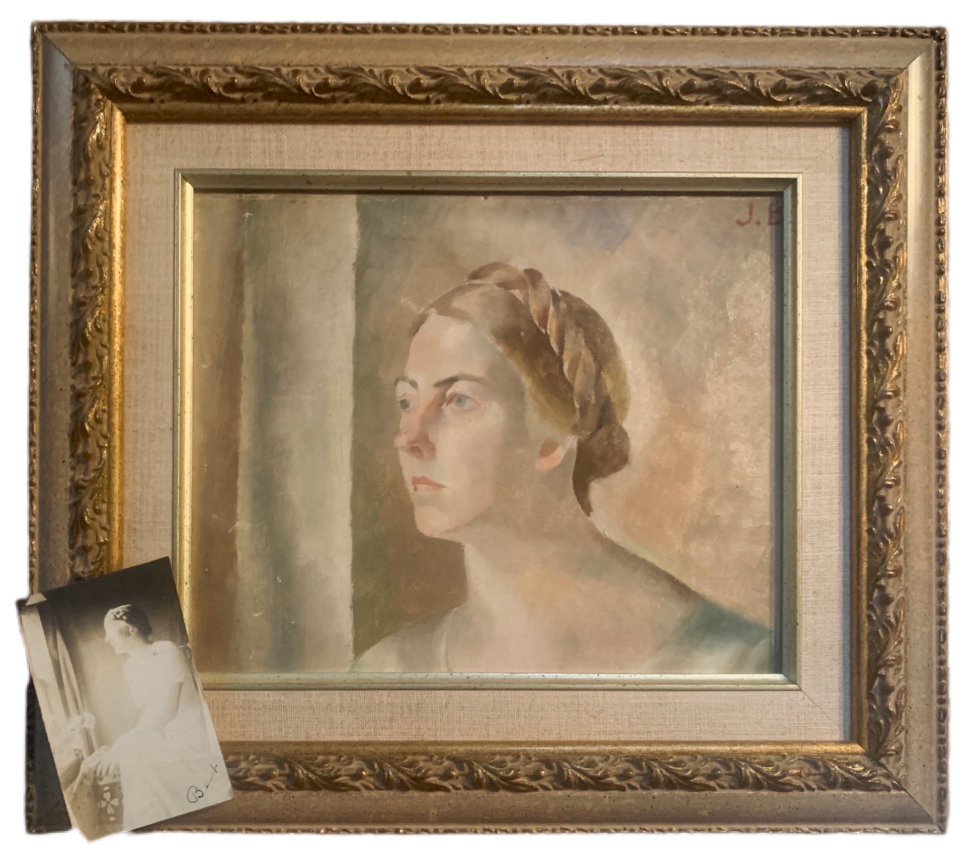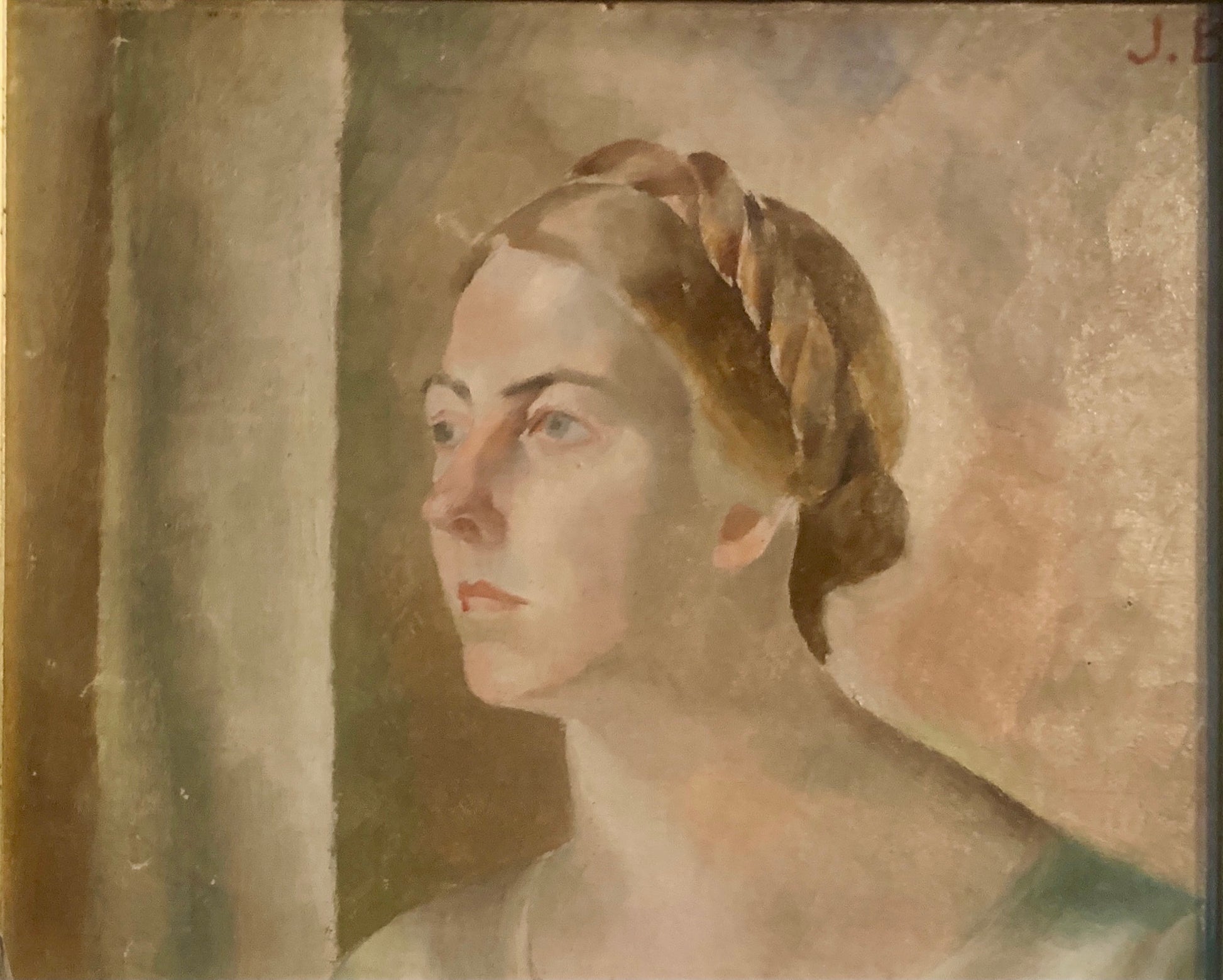 Portrait of artist Bertha Gladys Skou née Dickey (1891-1951), wife of Norwegian painter Sigurd Skou (1875 - 1929), painted by their friend John Barber (1893-1965).