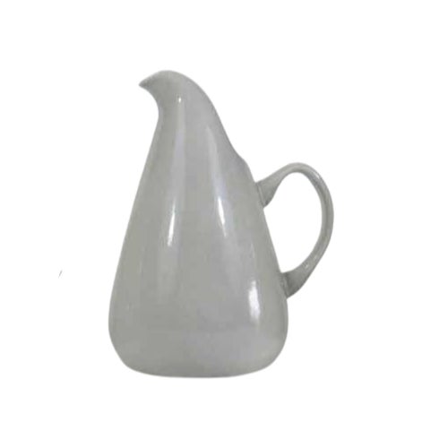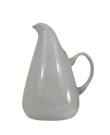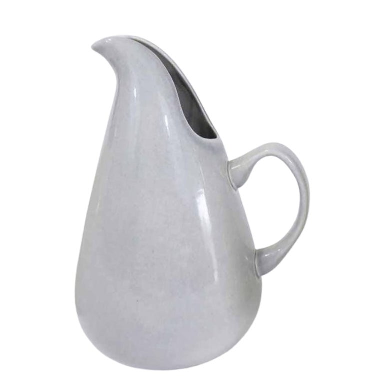 This vintage Russel Wright pitcher in Granite is a stunner. Made by the Steubenville China Company for the American Modern collection by Russel Wright the large ceramic handled pitcher is incredible in this elegant gray.